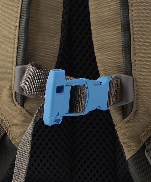 肩にフィットするショルダーハーネスには、一定の荷重で自動開放する安全性を考慮したホイッスル付きチェストバックルを採用しています。