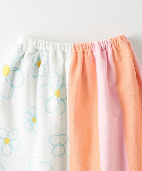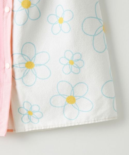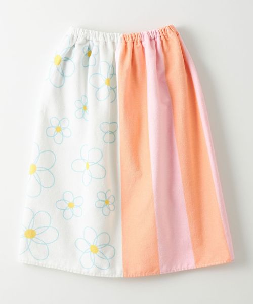 フラワー柄とワイドピッチのストライプのアシンメトリーが可愛らしいデザイン。