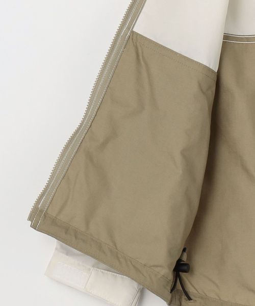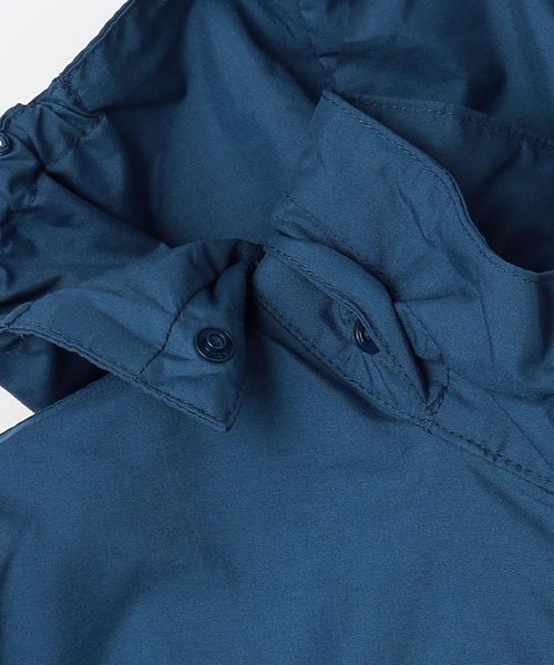 フードはスナップボタンで取り外しが可能で、外したときにはボタンを襟の中にしまうことができます。