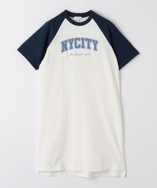 配色の袖とバックのポケットがポイントになったTシャツワンピース。