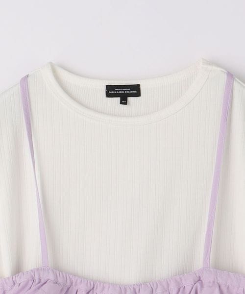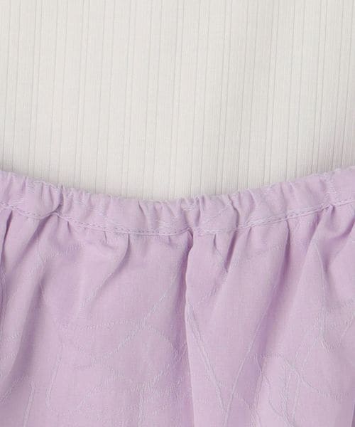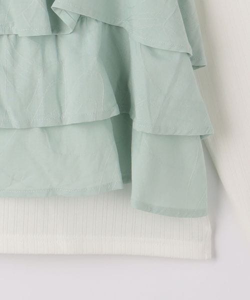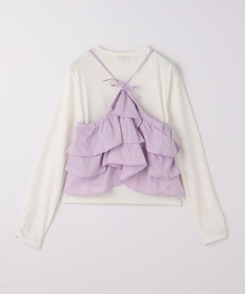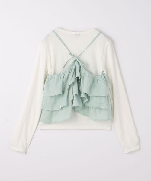 柄感のあるジャカード素材を使用したフリルキャミソールのレイヤードが可愛いセットアイテム。
