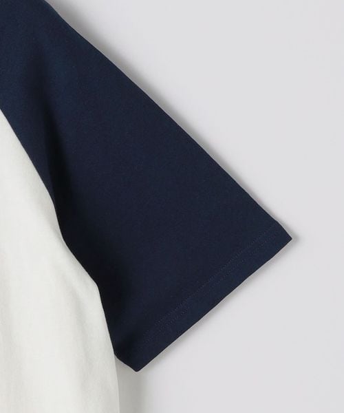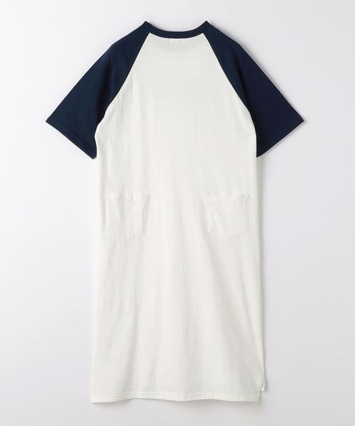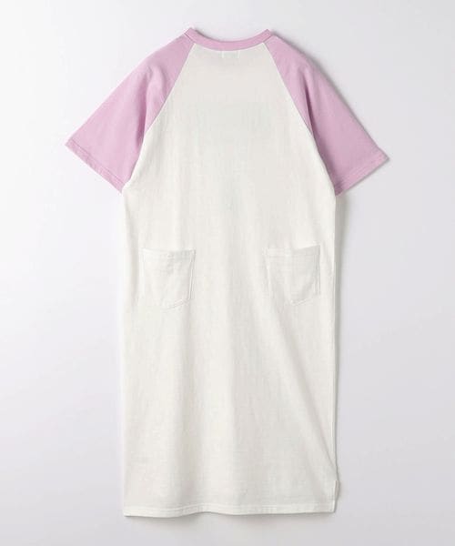 配色の袖とバックのポケットがポイントになったTシャツワンピース。