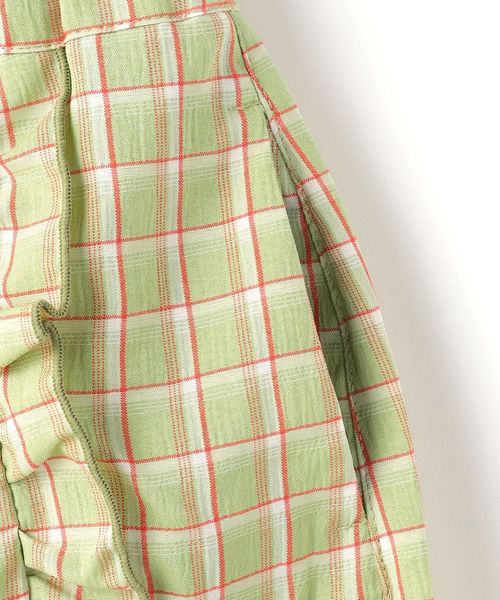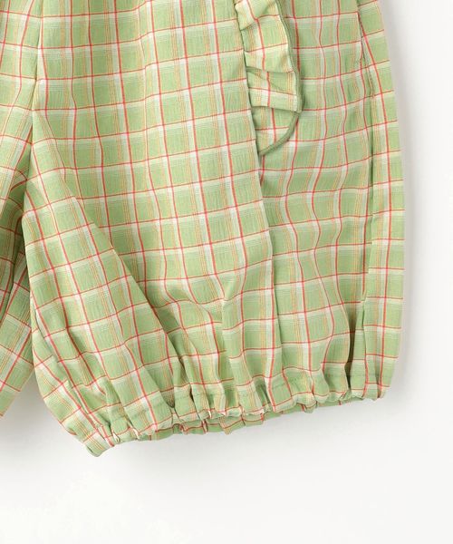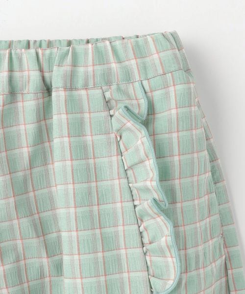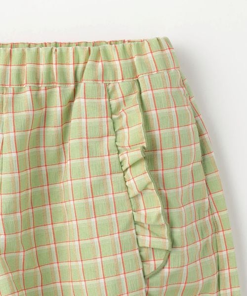 可愛いカラーリングのチェックが目をひくキュロットパンツ。