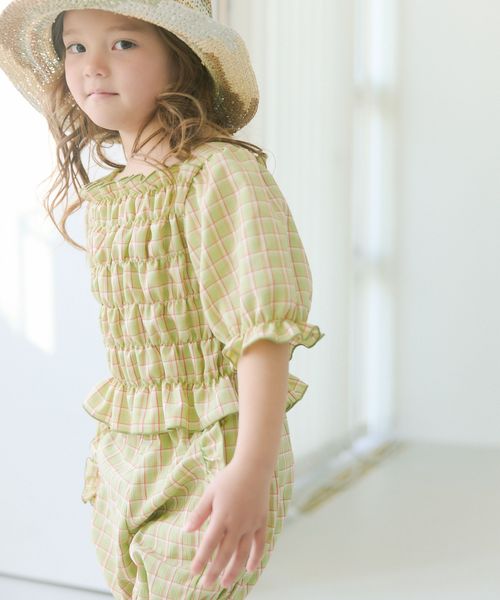 可愛いカラーリングのチェックが目をひくキュロットパンツ。