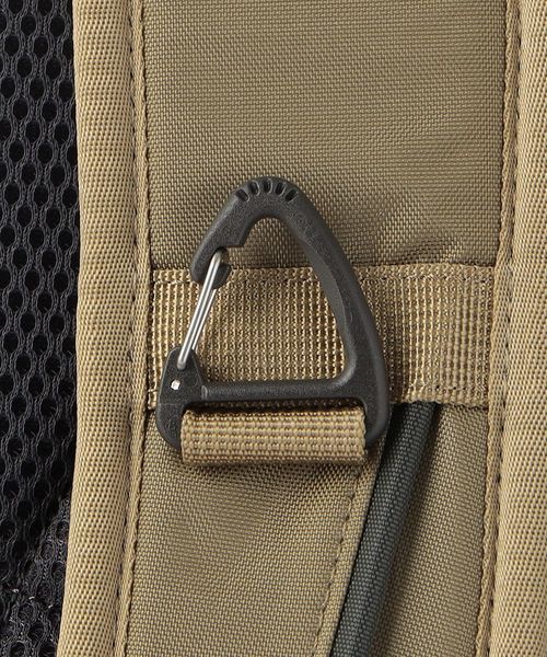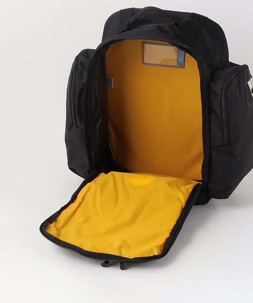 メインへのアクセスには、大きく開閉するU字型ファスナーを採用し、両サイドに荷物の仕分けに便利な大型の収納スペースを設けています。