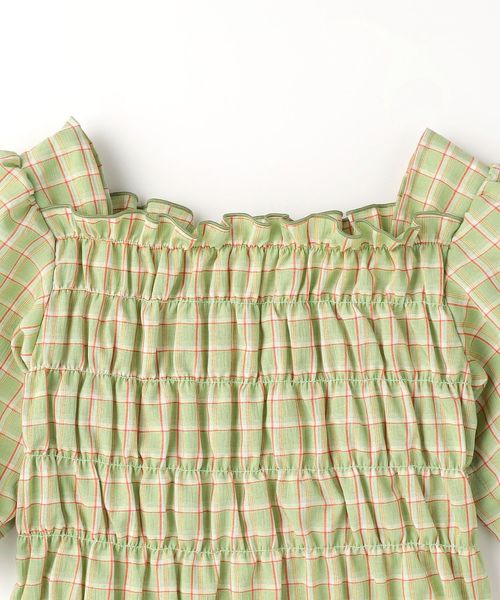 シャーリングデザインが華やかで、一枚着でも存在感たっぷりです。