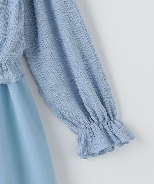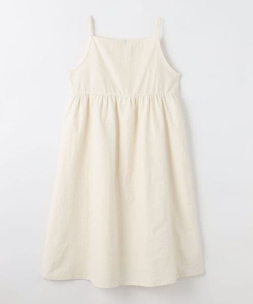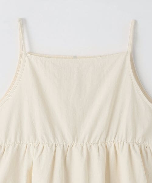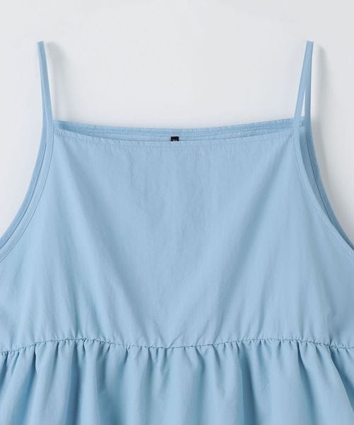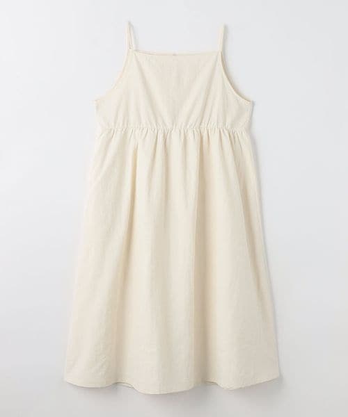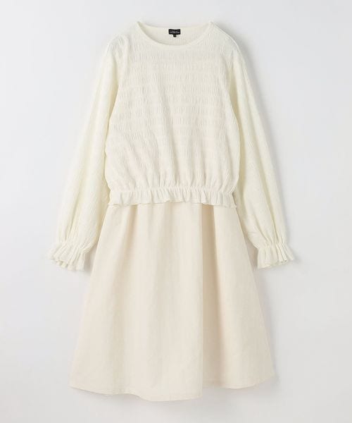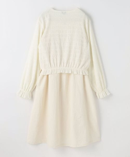 シャリみのあるキャミワンピースと、シワシワとした凹凸のある長袖カットソーのセットアイテム。