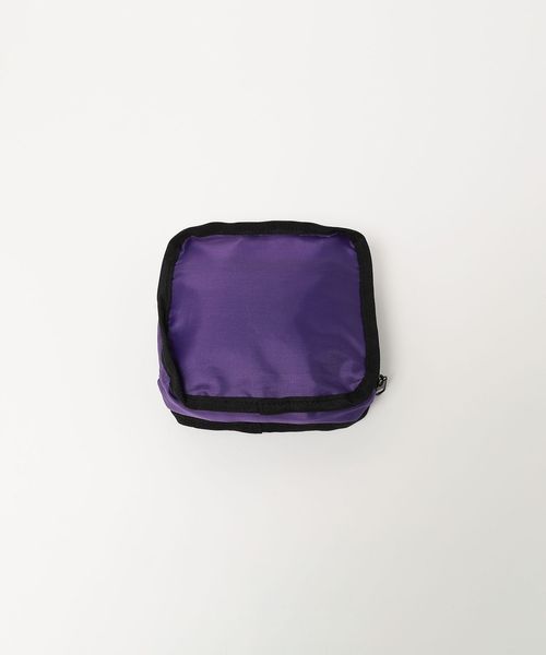 前面のロゴ付きジップポケットにバッグを畳んで小さく収納できます。