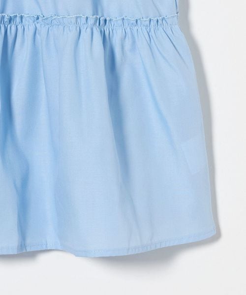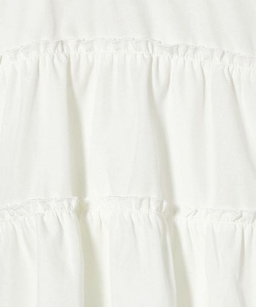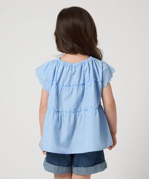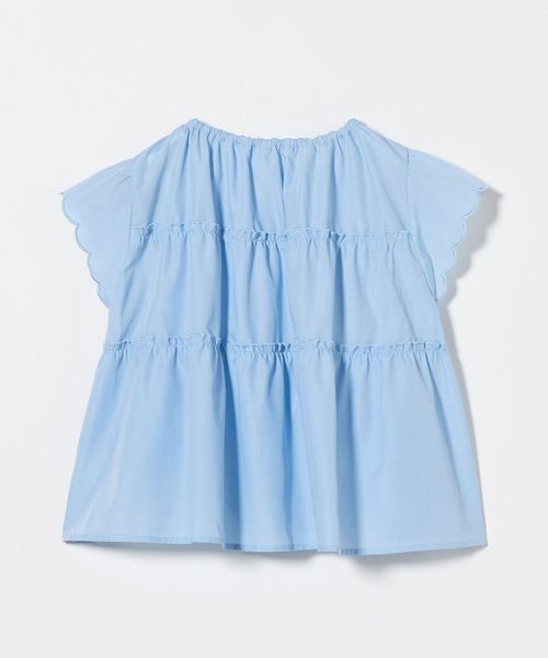 たっぷり入れたギャザーと波打つ袖のスカラップ刺繍がかわいらしいブラウス。