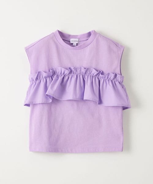 ボリュームのあるフリルがかわいいノースリーブTシャツ。