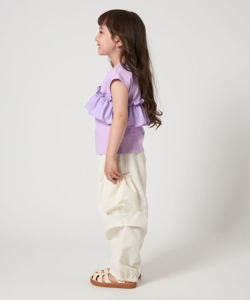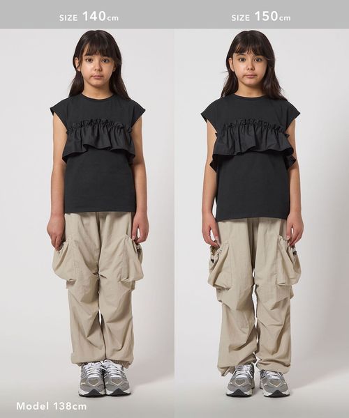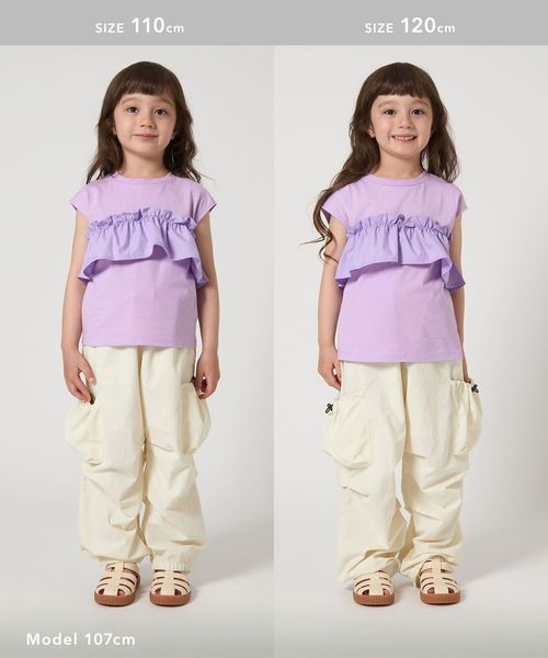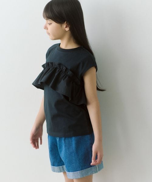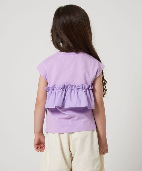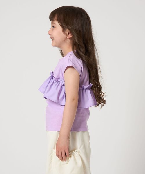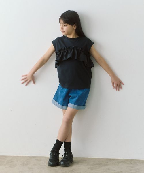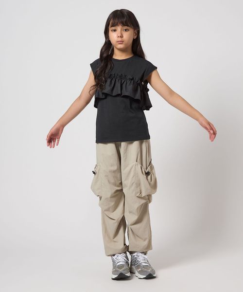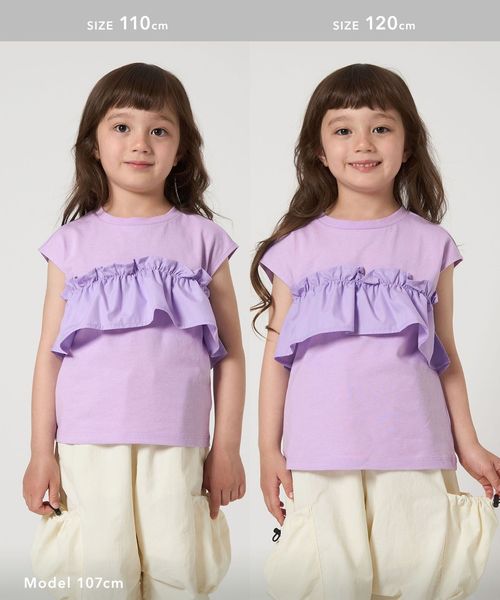 ボリュームのあるフリルがかわいいノースリーブTシャツ。