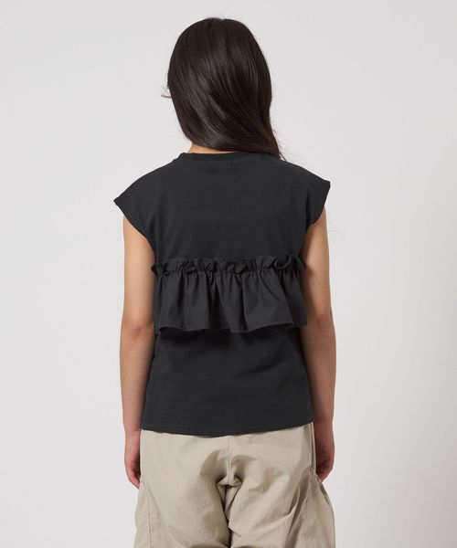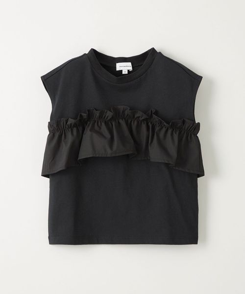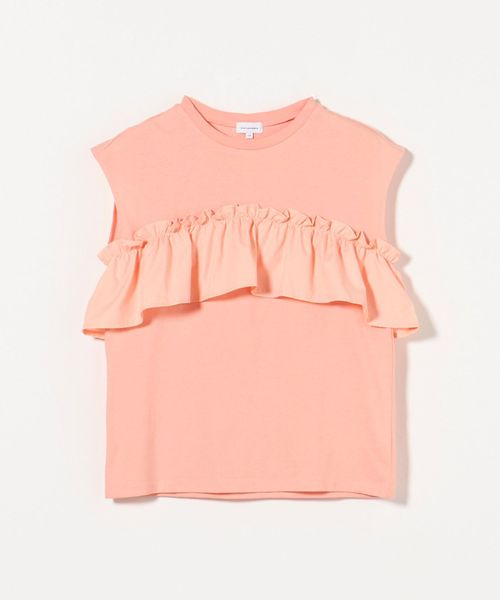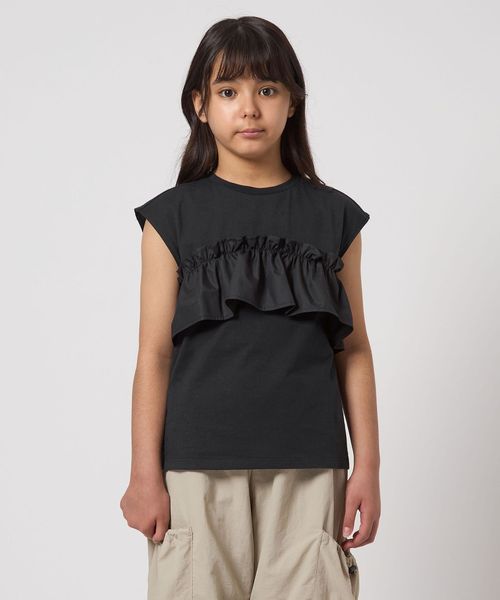 ボリュームのあるフリルが着映えするノースリーブTシャツ