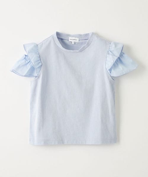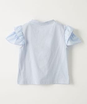 異素材のフリル袖とヘルシーな肩見せデザインがポイントのTシャツ。