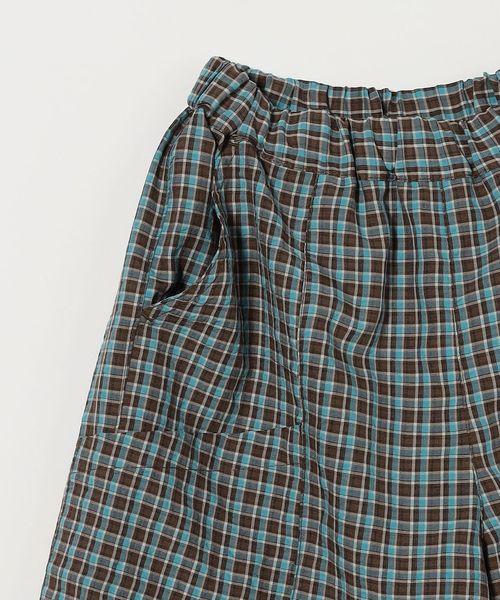 綺麗な配色チェックが目をひくビッグポケットパンツ。