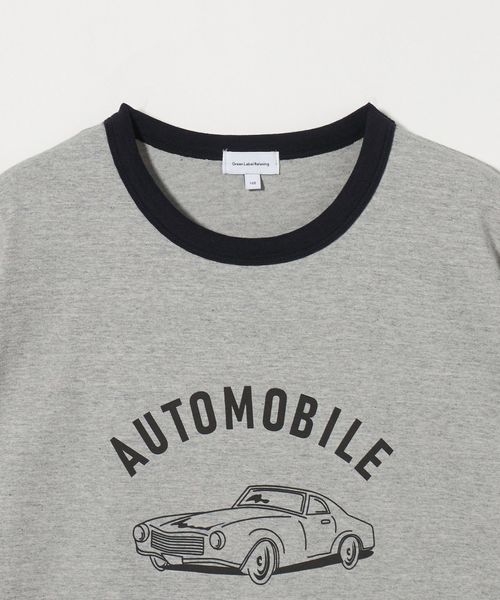 クラシックな雰囲気の乗り物をモチーフとしたグラフィックがオシャレなリンガーTシャツ。