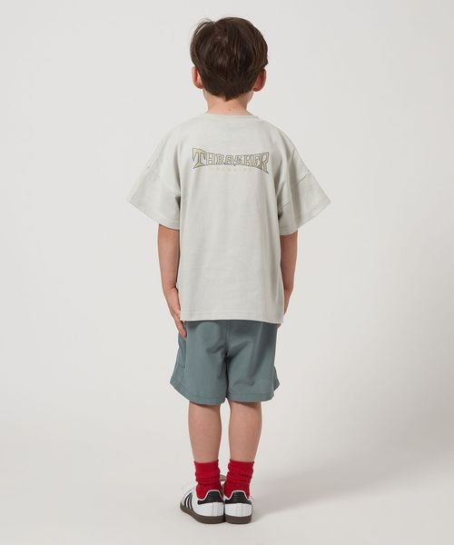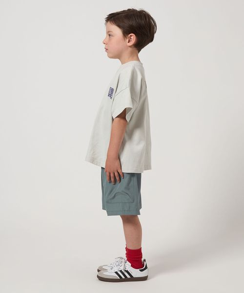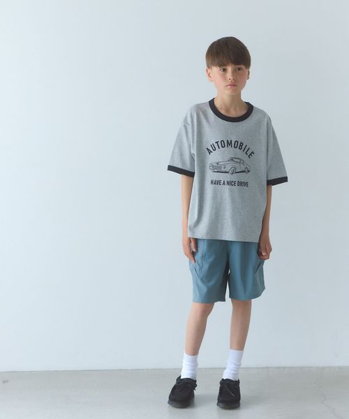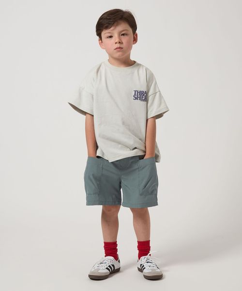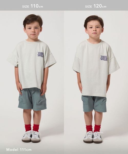 無地Tシャツと合わせた大人っぽい着こなしから、お子さまの好きなプリントTシャツと合わせていただいても◎です。