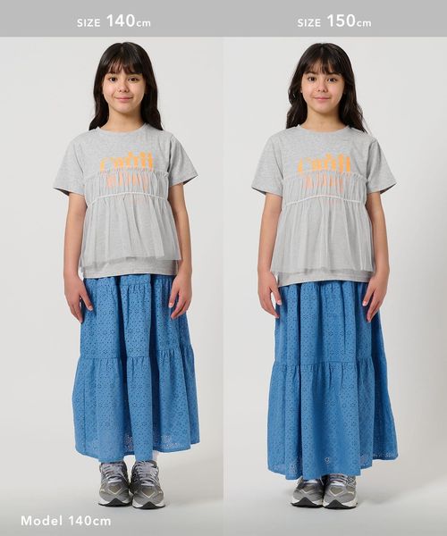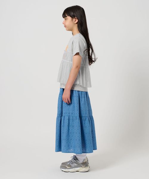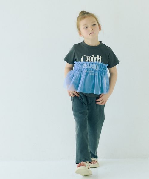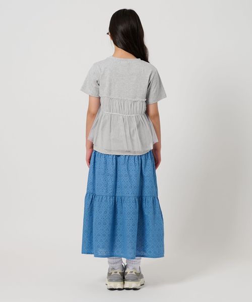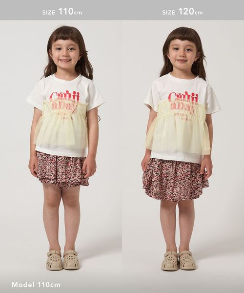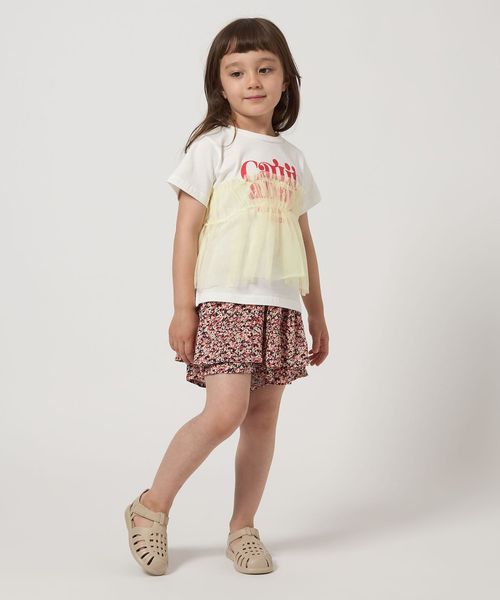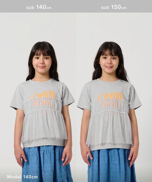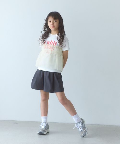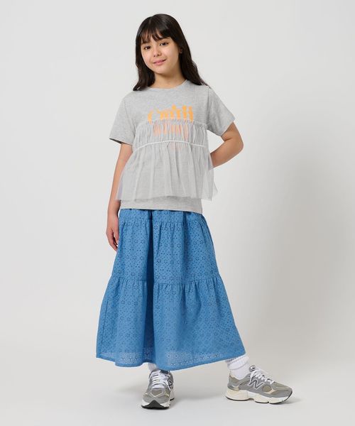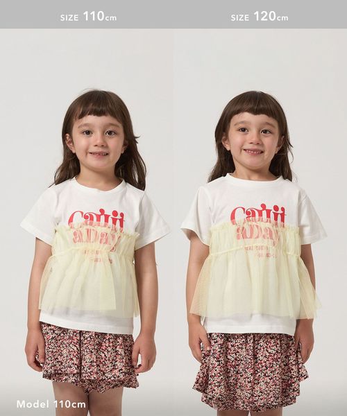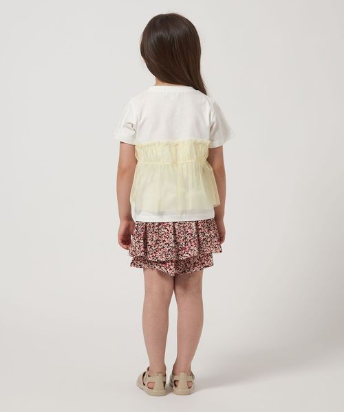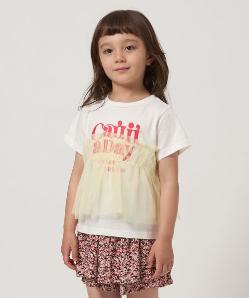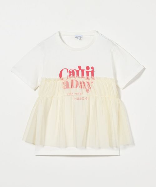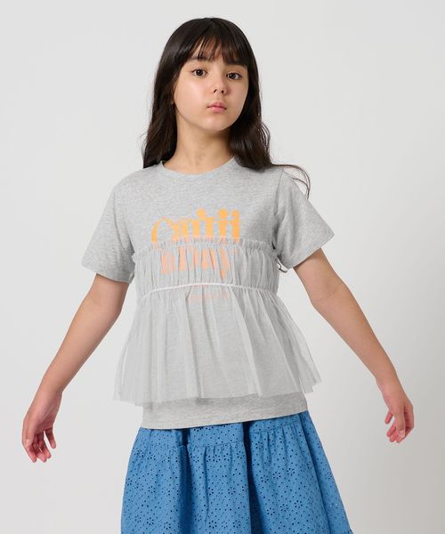 プリントTシャツにチュールのフリルがドッキングされたTシャツ。