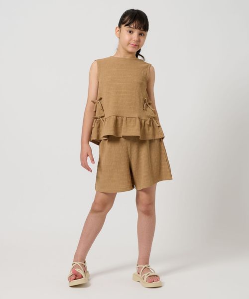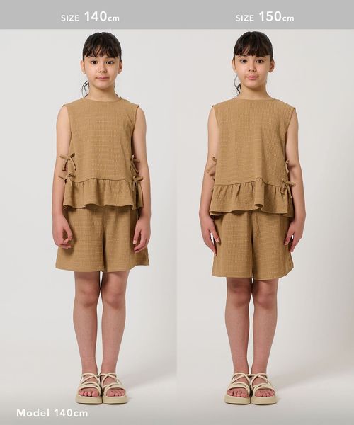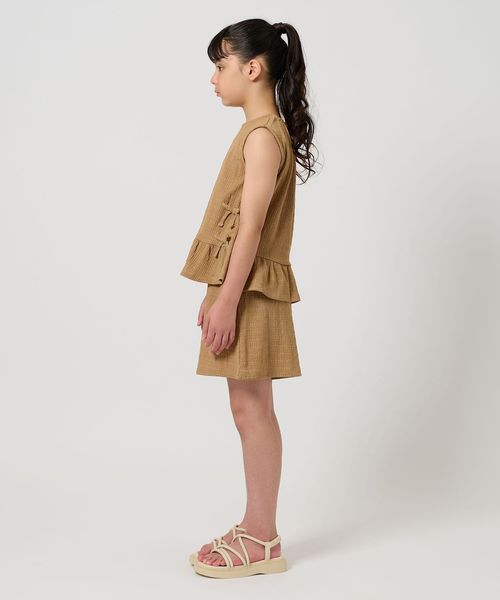 別々に着まわしても映えるよう、脇のリボンやペプラムデザインで女の子らしく仕上げました。