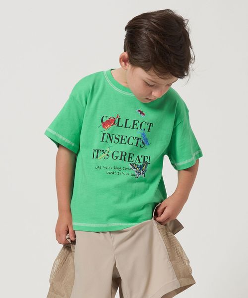 ロゴの上を歩く昆虫プリント、またチョウチョには飛んでいる影をつけるなど、程よいリアル感にもこだわりました。
