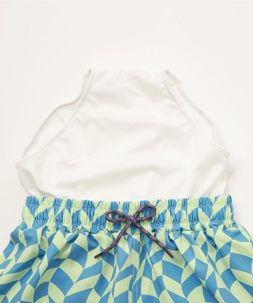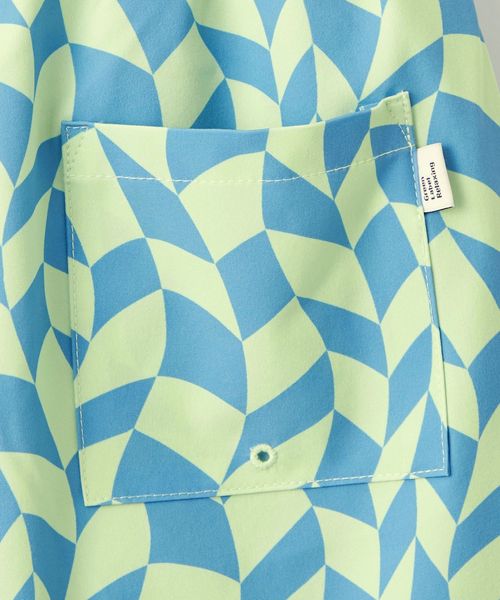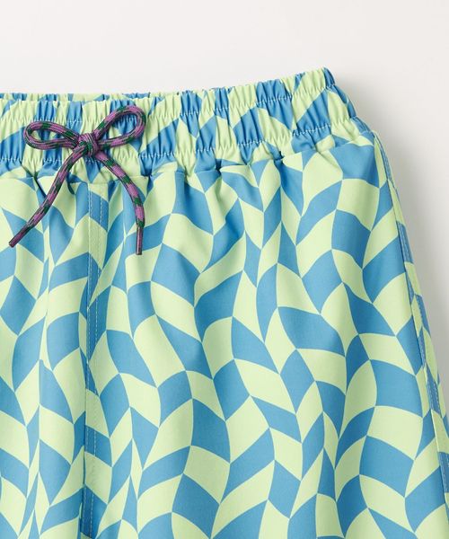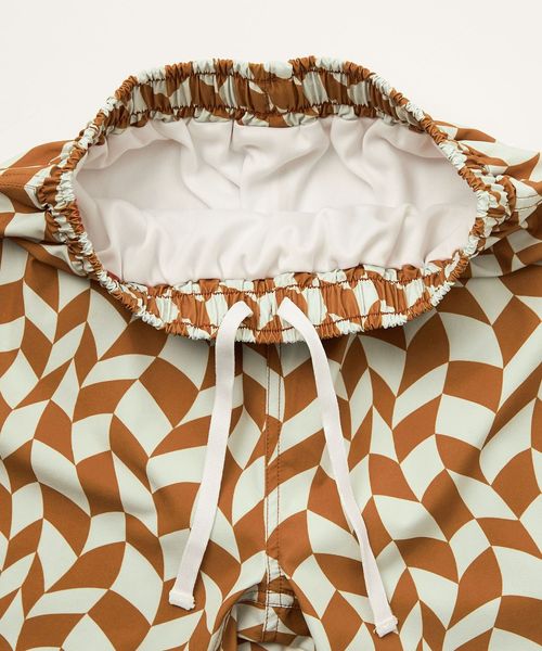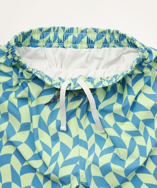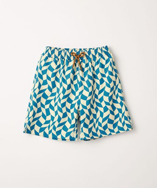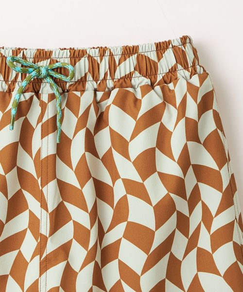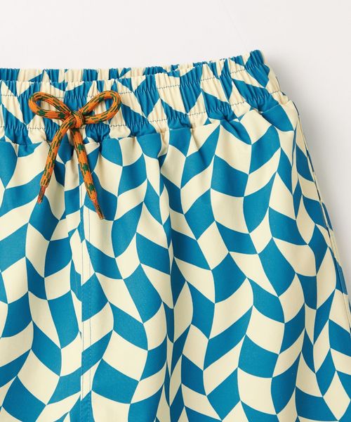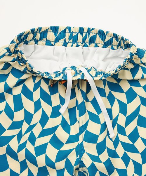 イレギュラーの幾何学柄が目をひくボードショーツ。