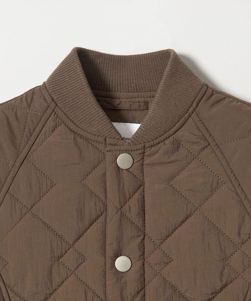 幾何学柄風のダイヤキルトのステッチが他にはないデザインの中わたブルゾン。軽やかでさっと羽織れる素材で秋から活躍してくれます。
