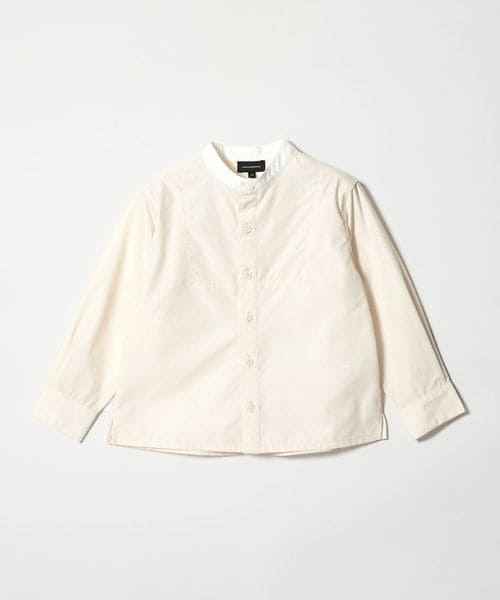 バンドカラーと切り替えのデザインがポイントのロングスリーブシャツ。