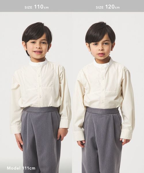 バンドカラーと切り替えのデザインがポイントのロングスリーブシャツ。
