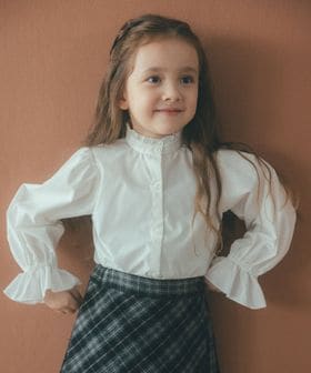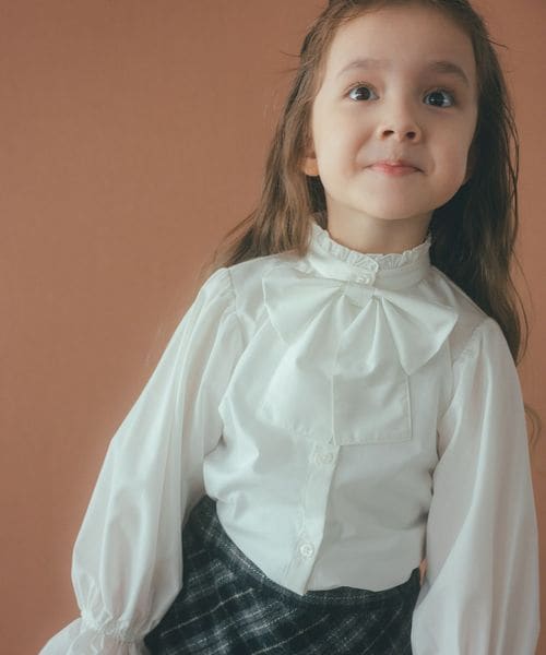 スタンドカラー フリルリボン ブラウス/ キッズ 110cm―130cm