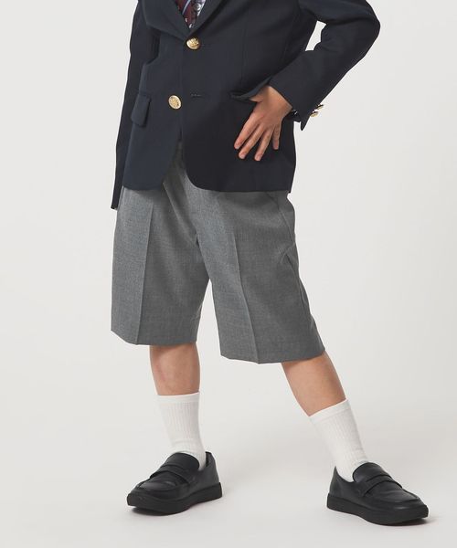 セレモニースタイルの定番、センタープレスのひざ上丈ショートパンツ。