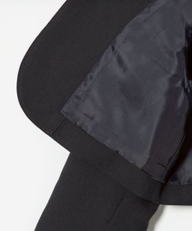 コンパクトな着丈に1つボタンのシンプルなデザインで洗練された着こなしに。