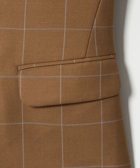 華やかなブラウンカラーをベースにしたウィンドペンの柄がトラッドな印象のジャケット。