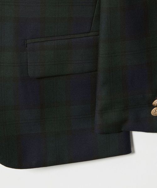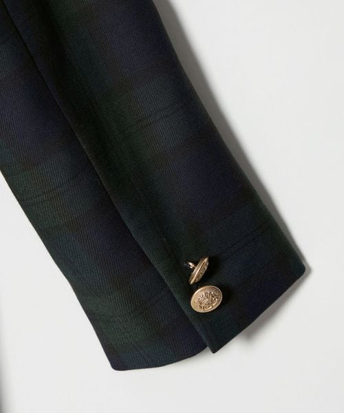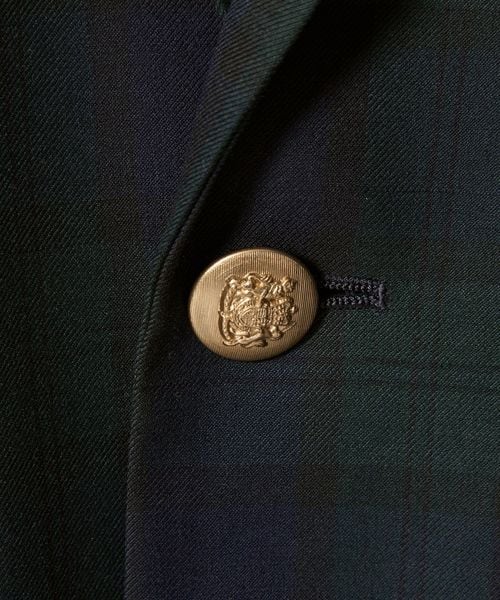 ブラックウォッチ柄に金ボタンをあしらったジャケットは、英国トラッドを連想させる堂々とした風格です。