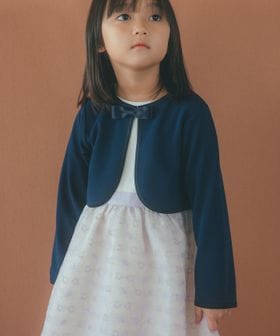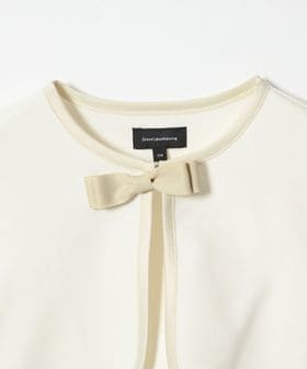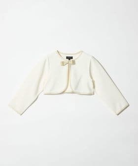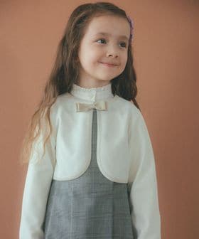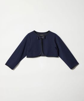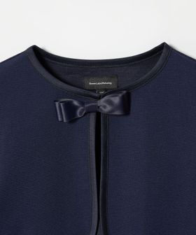 上品なパイピングを施したシンプルなフロント、取り外し可能なリボンのクリップがワンポイントになったボレロ。