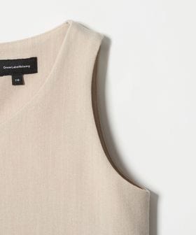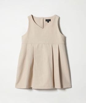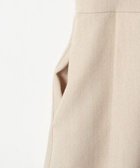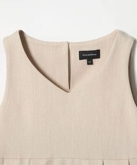 ジャンパースカートも高め位置の切り替えに、顔周りをすっきりとみせてくれるVネックで合わせるインナーによって違った雰囲気を楽しめます。