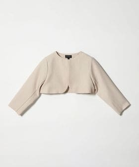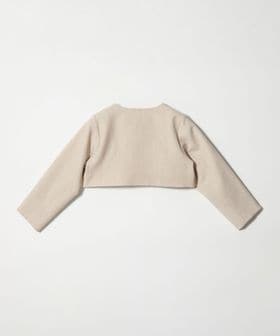 丸いカーブのついた前身頃の裾が女の子らしいボレロは、ジャンパースカートに合わせてショート丈で仕上げているのでバランスよく着ていただけます。