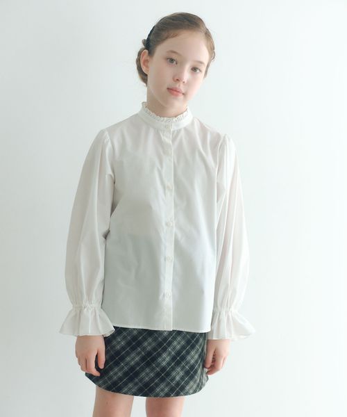 スタンドカラー フリルリボン ブラウス / キッズ 140cm―160cm