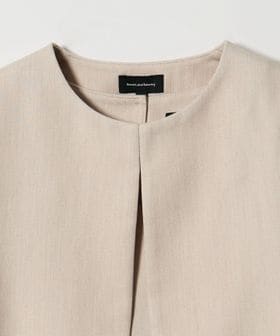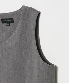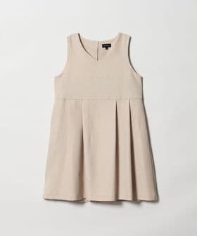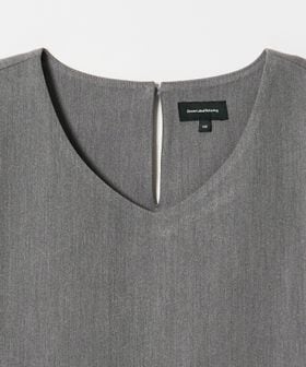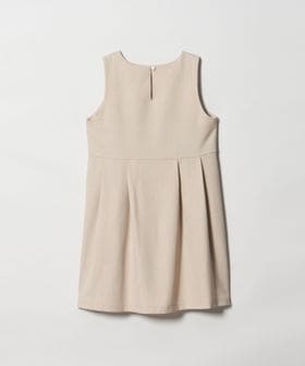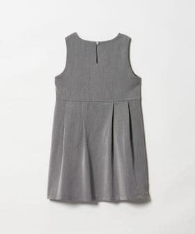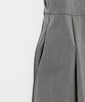 ジャンパースカートも高め位置の切り替えに、顔周りをすっきりとみせてくれるVネックで合わせるインナーによって違った雰囲気を楽しめます。