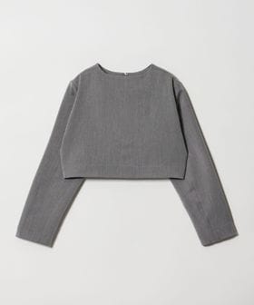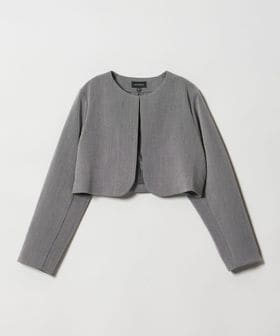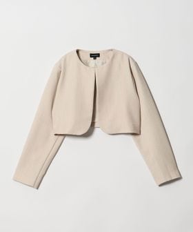 丸いカーブのついた前身頃の裾が女の子らしいボレロは、ジャンパースカートに合わせてショート丈で仕上げているのでバランスよく着ていただけます。