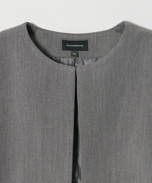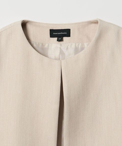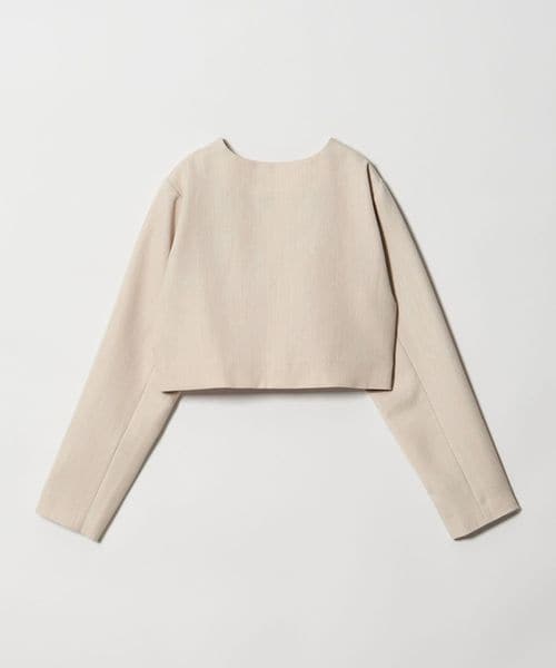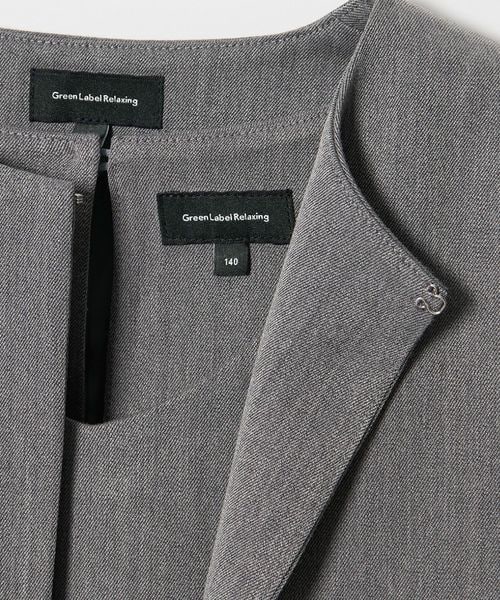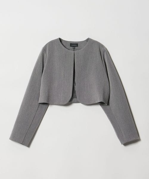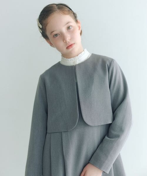 丸いカーブのついた前身頃の裾が女の子らしいボレロは、ジャンパースカートに合わせてショート丈で仕上げているのでバランスよく着ていただけます。