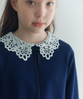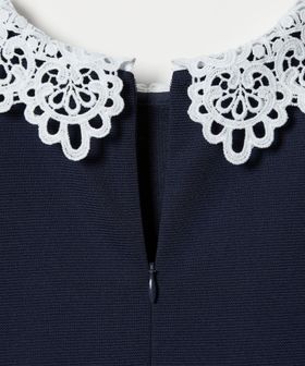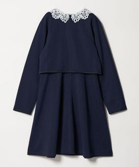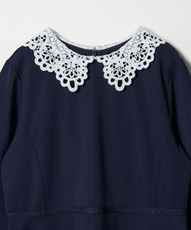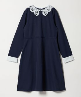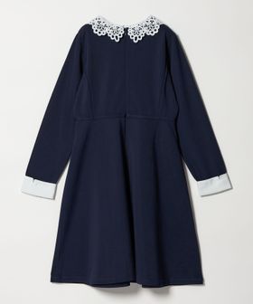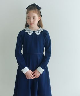 ワンピースは清楚なレースの白襟と白のカフスをあしらいました。