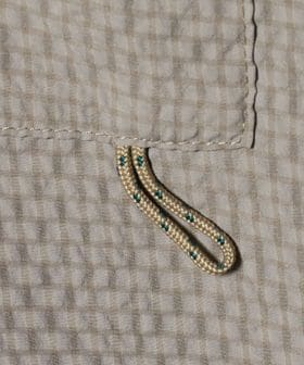 ポケットにブランドのロゴ刺しゅうとループを施しアクセントにしました。