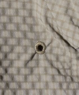 大人のプロダクトにも使用されている肌離れの良いチェックのサッカー素材を使用。