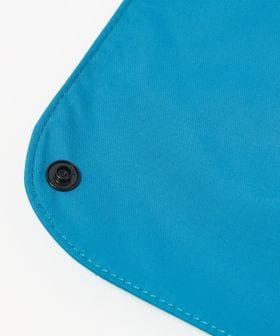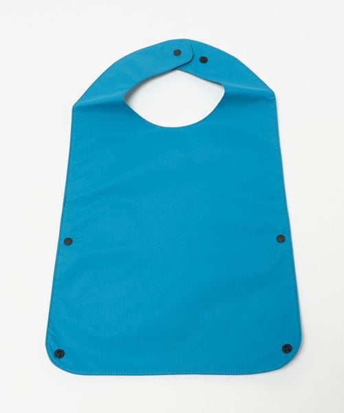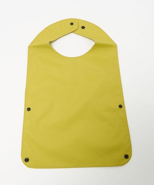 裾のドットボタンを留めると、食べこぼしを受けるポケットが組み上がる仕様です。