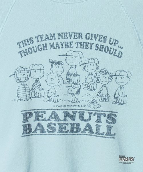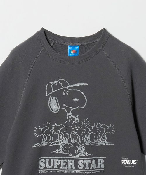フロントにはレトロ感漂うスヌーピーと仲間たちをプリント、バックはヴィンテージライクなロゴをプリント。