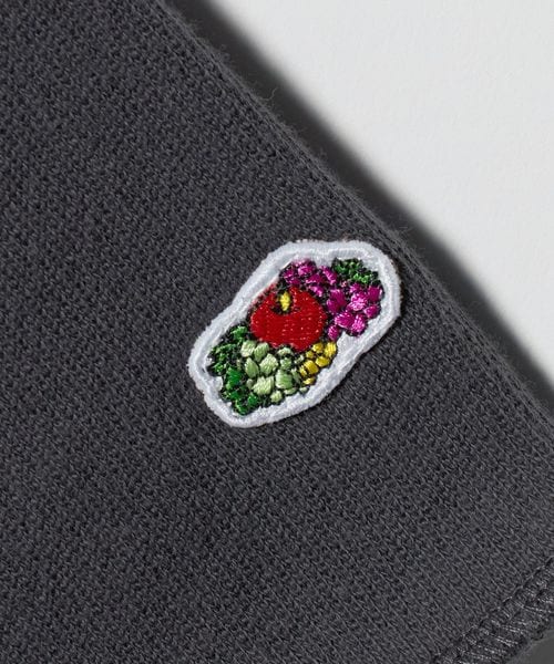 左袖にはワンポイントで<FRUIT OF THE LOOM>のブランドワッペン刺繍をしています。