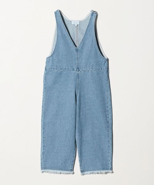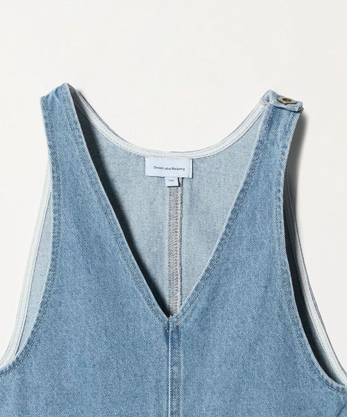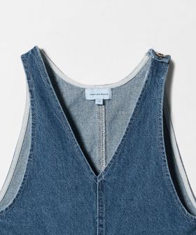 すっきりとしたVネックデザインがポイントのデニムサロペット。