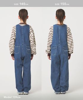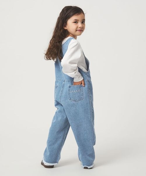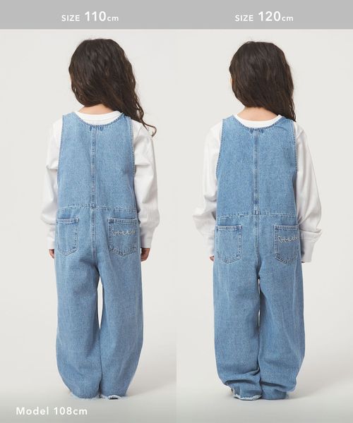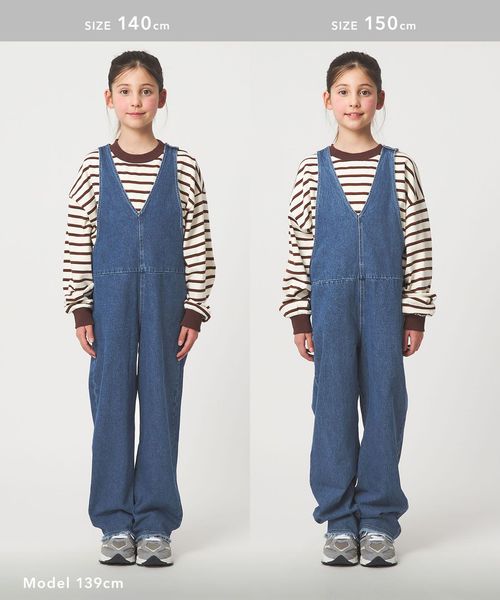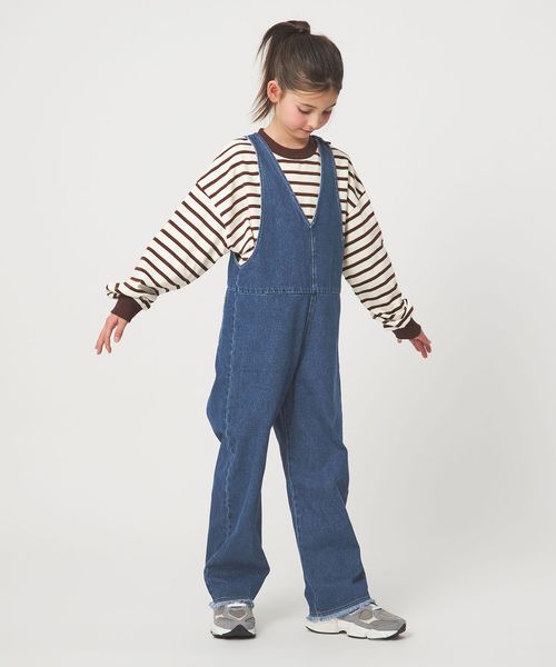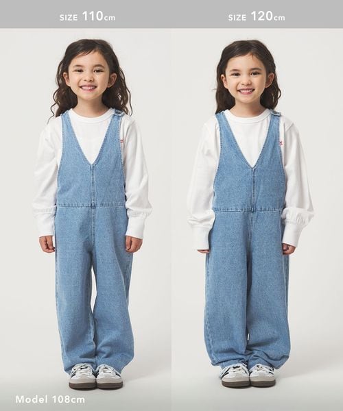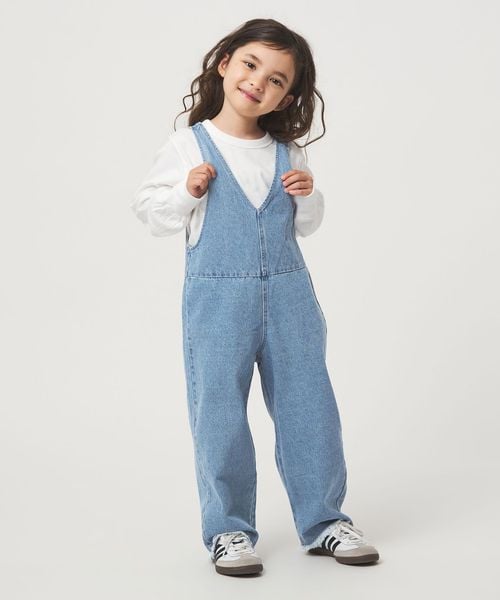 すっきりとしたVネックデザインがポイントのデニムサロペット。