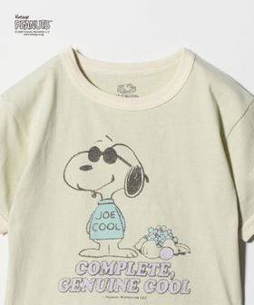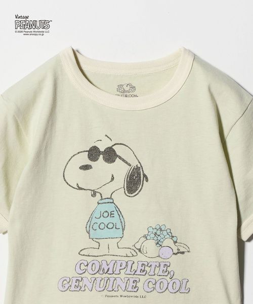 フロントには、愛らしい「スヌーピーと仲間たち」をテーマにした、かすれのあるヴィンテージライクなグラフィックをプリントしました。