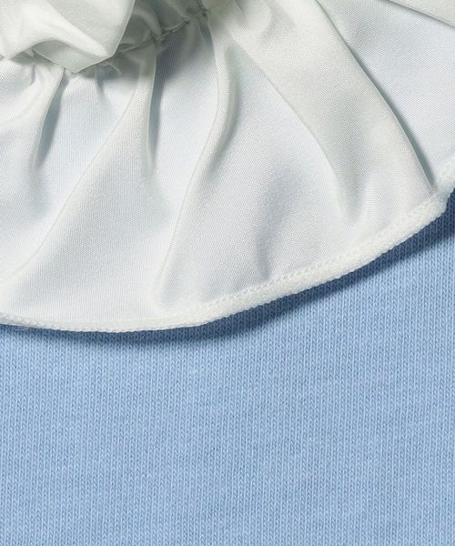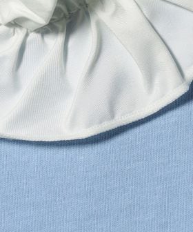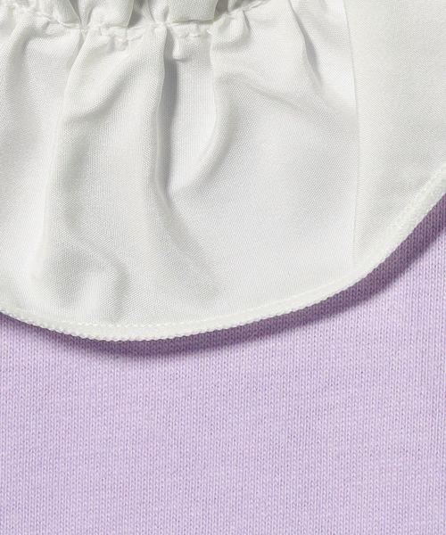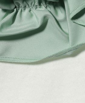 胸元に配色のフリルをあしらったシンプルながら着映えするデザイン。