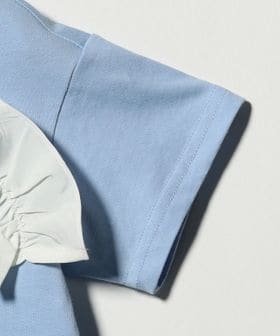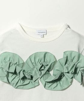 シンプルなTシャツのボディに、甘くなりすぎない立体感のあるフリルをプラスすることで